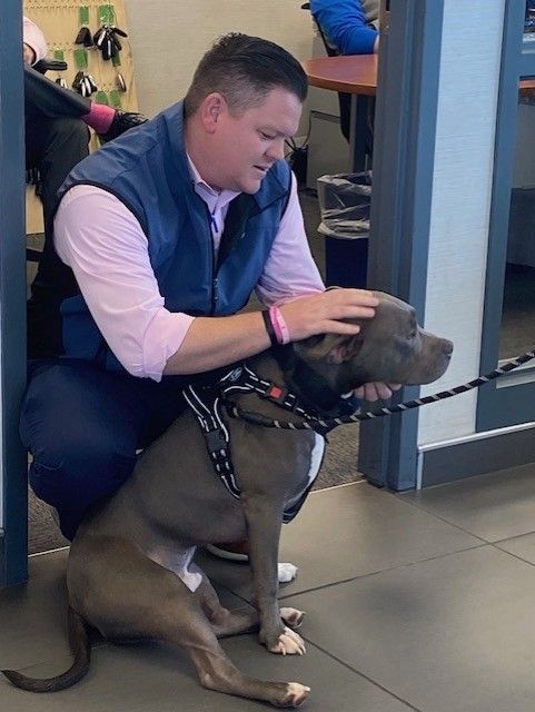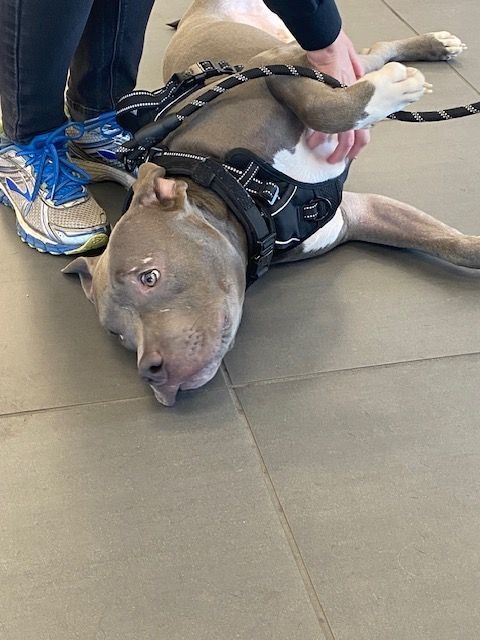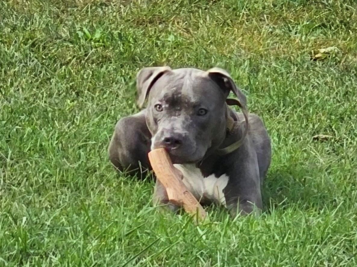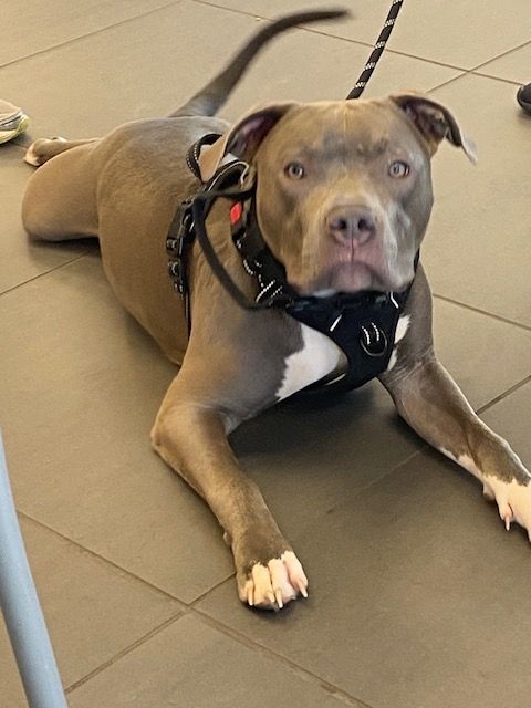 Meet Booker! This adorable blue-grey bully mix puppy could not be more sweet.
