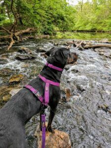 Jaida (formerly Potter) joined the HOPE Program on Friday 2/24/2023. She is approximately 7 years old and is sponsored by Canine Rescue of Central PA. Jaida is joining the Program after she and her family worked REALLY hard to help her adjust to a new baby in the house. Unfortunately, she prefers the companionship of older kids (10 years and over) to that of an infant or toddler. Jaida has a HIGH PREY DRIVE and will give chase to small critters, so she shouldn’t live with cats, birds, guinea pigs, etc. The smaller and squeakier, the more interested Jaida gets! She and her family put in a lot of time and work, so she’s already a very well behaved girl. She loves going for walks and hikes, but prefers not to be bombarded by off leash dogs. After all, she’s a well mannered gal and expects her friends to be the same!