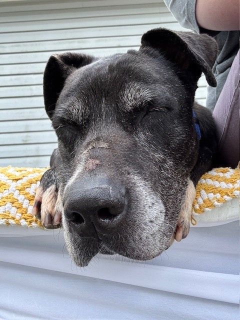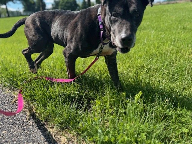 My foster also says I’m a good grandma to the other young pups here. I’ll play with them, but I’ll also put them in their place when necessary. I really like dogs smaller than me, which shouldn’t be hard to find because I’m an 8 year old lab x Great Dane mix and I’m about 85lbs. My best friends here are all under 30lbs.